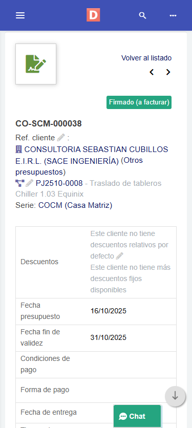 Crea presupuestos desde oportunidades y conviértelos en pedidos y facturas en un clic. Usa listas de precios, impuestos y multi-moneda, todo integrado con Pedidos de Clientes y Facturación electrónica.